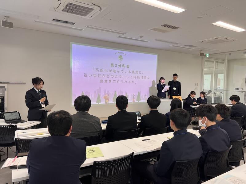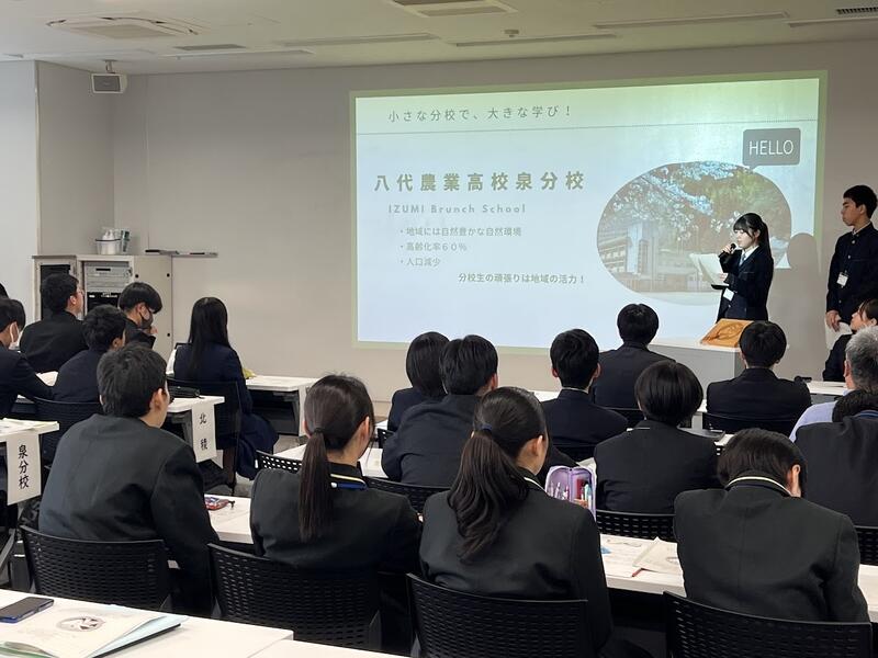 代表の3名は、特色有る泉分校の学びや「地域探求部」での実践的な学びについて事例を発表!