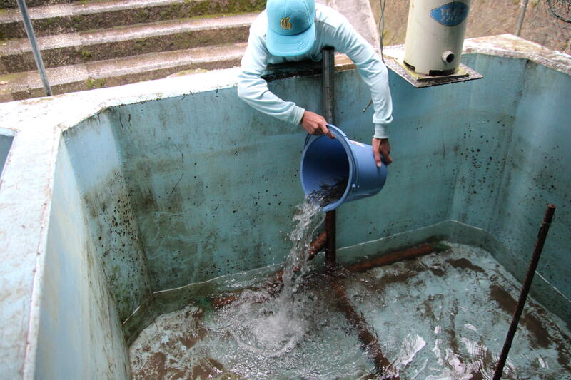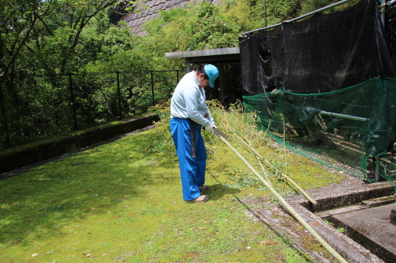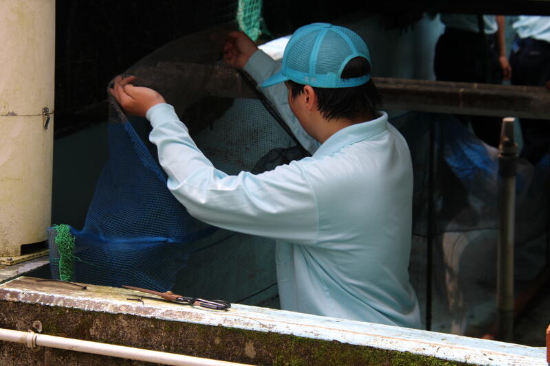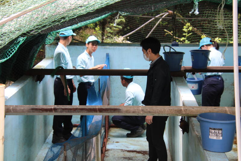 2年生グリーンコースの生徒たちで、養魚漕の清掃を行いましたひらめき