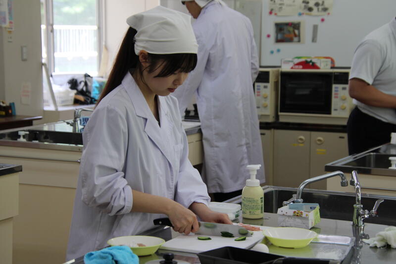 3年生ライフコースを覗いてみると、フードデザインの授業で桜を使った塩漬けを作っていました音楽