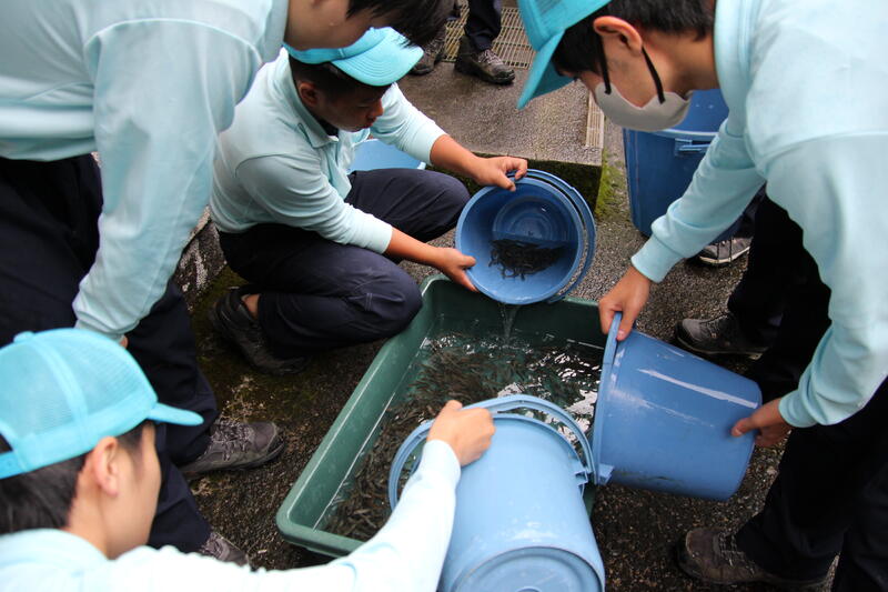 毎年ヤマメをお迎えして、比較実験や観測を行います音楽過去にはマイクロバブルや昆虫食の有無による生育状況の研究を行いましたキラキラ
