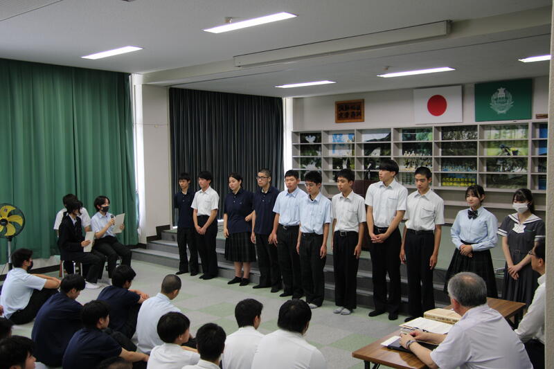 生徒会総会では今年度の学校行事計画や昨年度の決算報告が行われましたOK体育祭や文化祭、クラスマッチと行事が続く学校ですので、全員で団結して頑張っていきましょう花丸