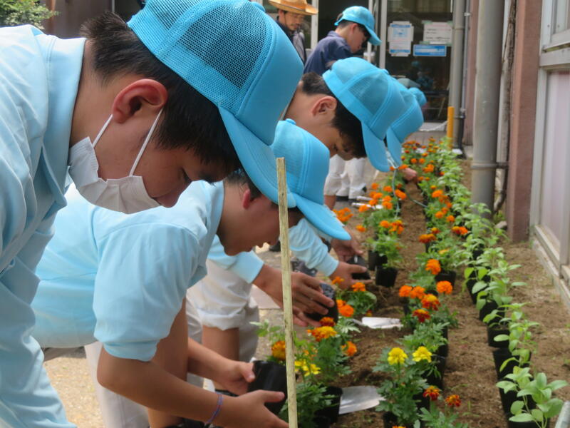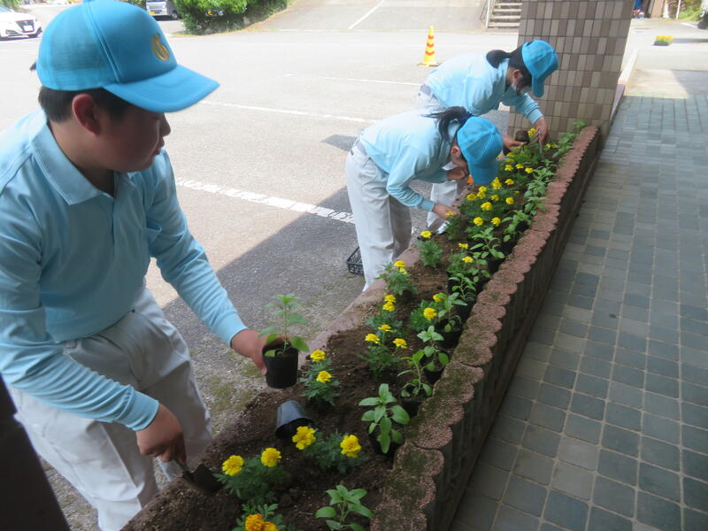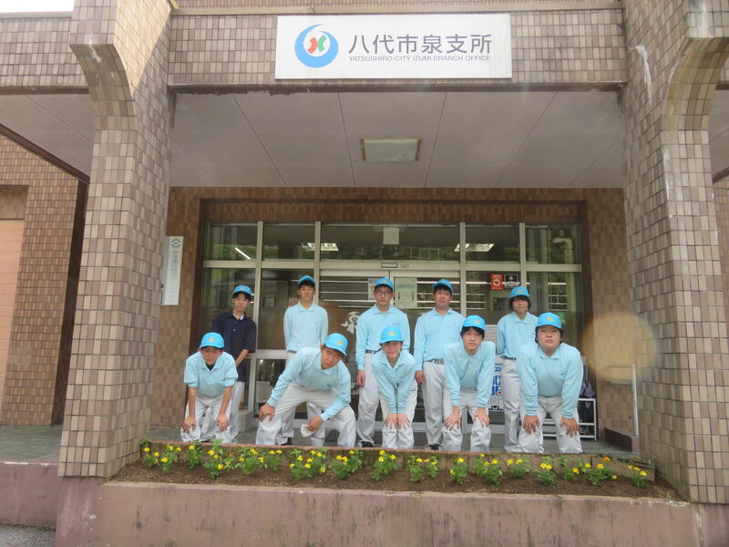 先週20日(金)に、1年生が八代市泉支所にて花壇の花植えを行いましたキラキラ