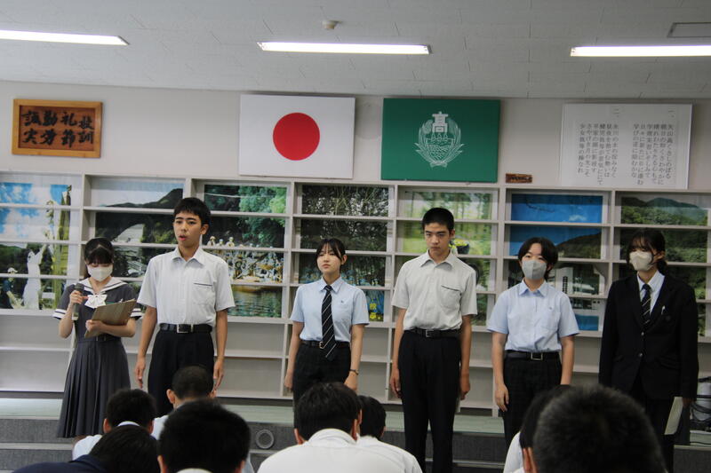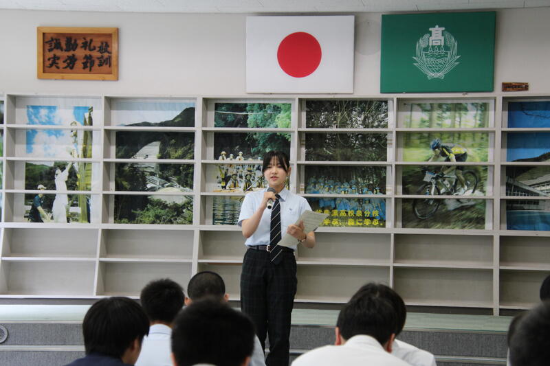 1年生からは高校生活での決意や目指す人物像について、2・3年生からは高校での学びや農林業の課題等を中心に発表がありました花丸