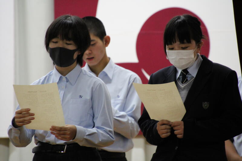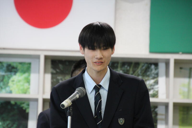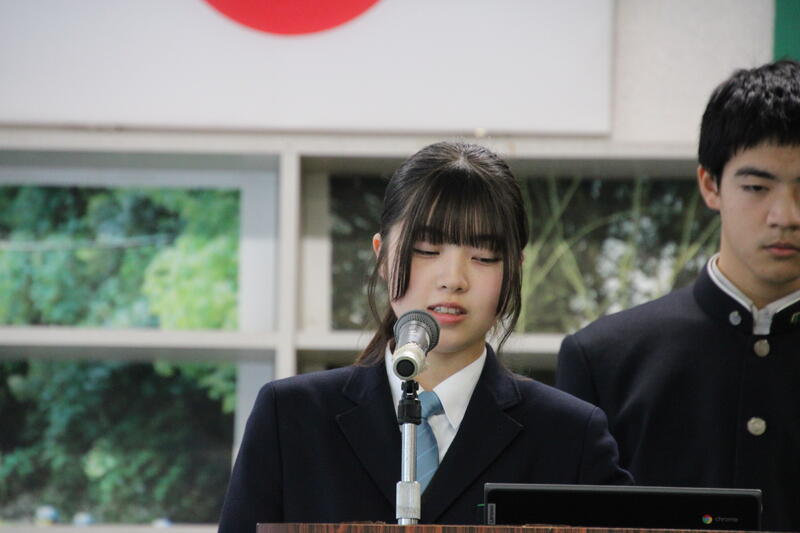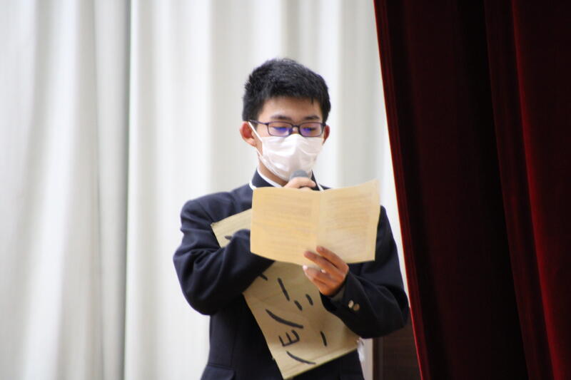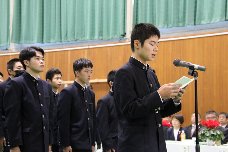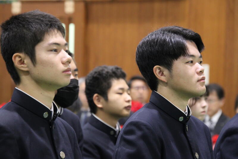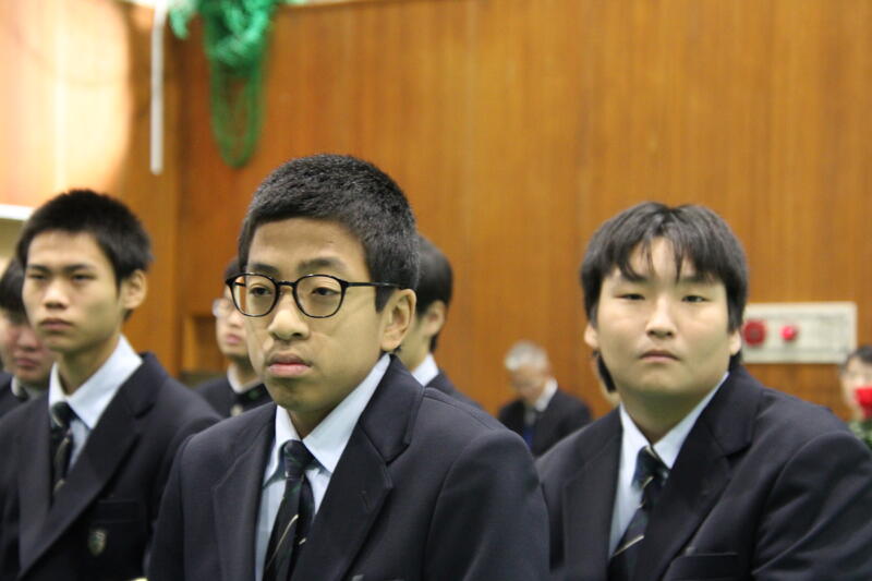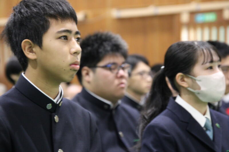 記念式典では、全校生徒の倍以上にあたる80名以上の来賓の方々にご参列いただき、生徒たちも緊張した面持ちで参加していました王冠