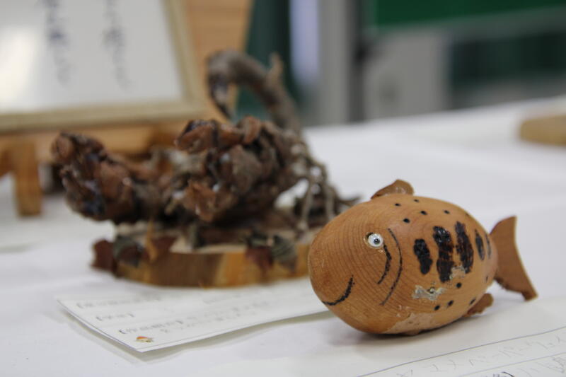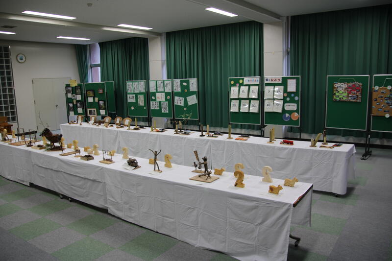 学生ホールでは、授業でつくった作品や委員会等の展示が行われ、