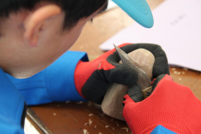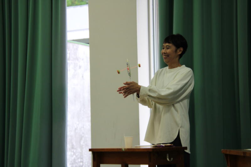 1年生の授業を覗いてみると、竹とんぼを作り、実際に飛ばしていました花丸