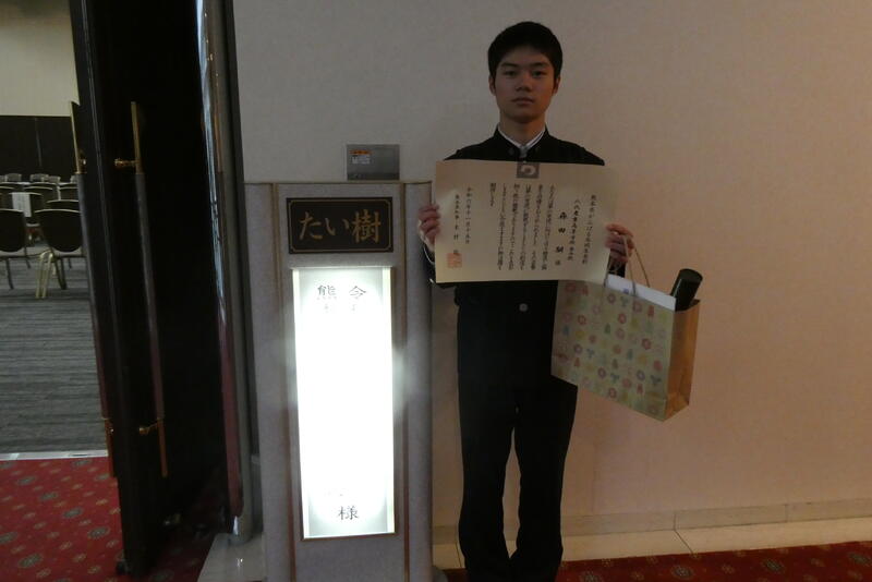 泉分校からも(3年生全員が頑張っており、優劣をつけることはできないですが)代表生徒が表彰式に参加し、知事から表彰状が授与されましたキラキラ