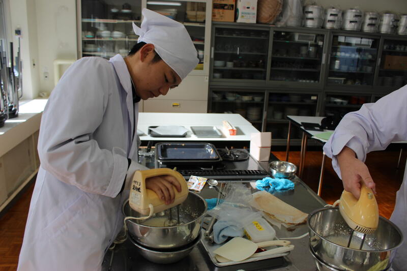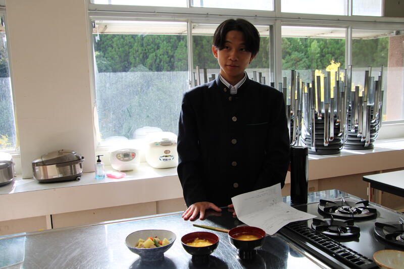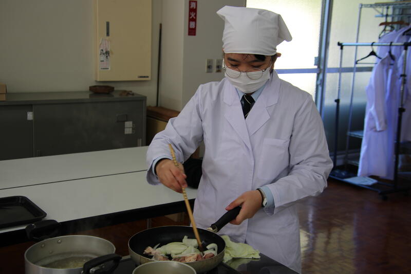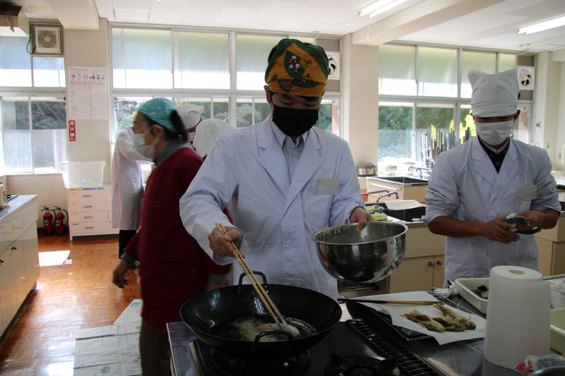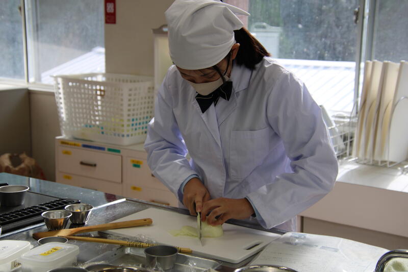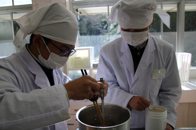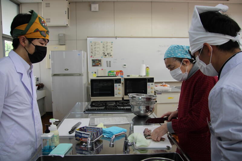 終業式の午後、調理室では地域探求部の生徒たちが、来年行われる「第4回くまもとジビエ甲子園」に向けて試作を行っていましたピース