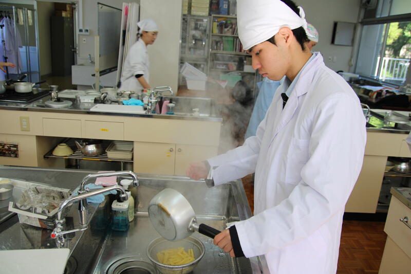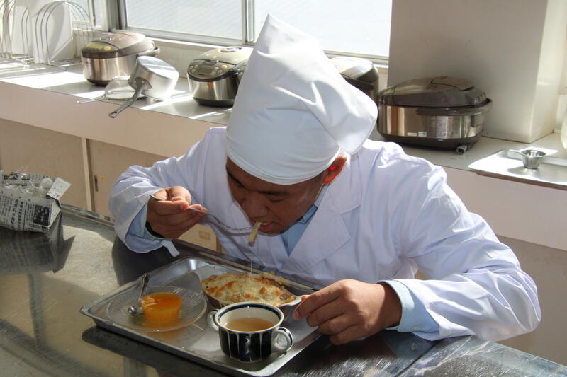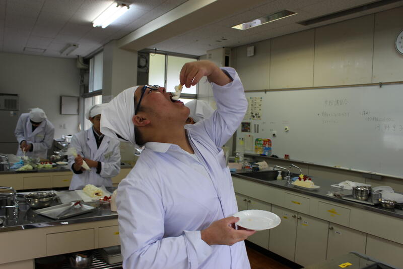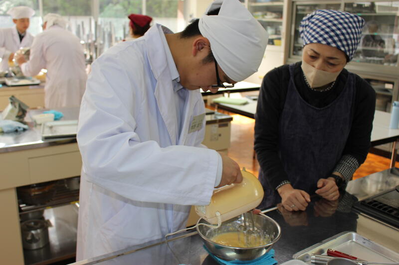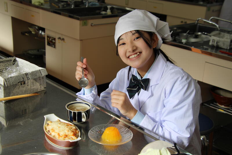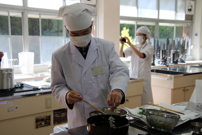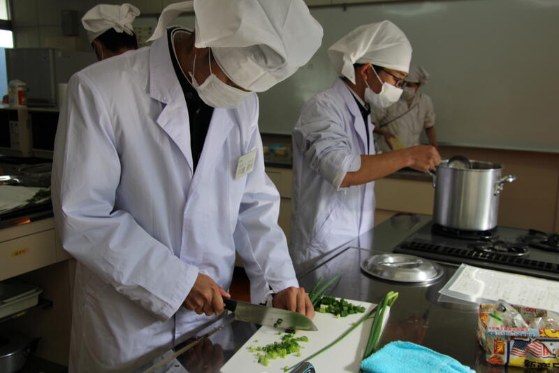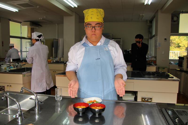 終業式の午後、調理室では地域探求部の生徒たちが、来年行われる「第4回くまもとジビエ甲子園」に向けて試作を行っていましたピース