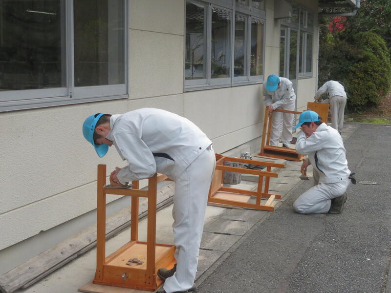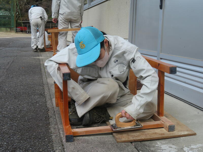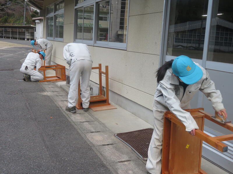 2学期末から進めていた机磨きもいよいよ終盤となりました音楽