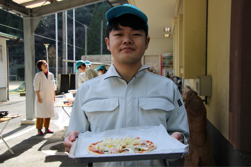 鹿肉を使ったピザまんつくりを行っており、レシピを見ながら楽しく調理を行っていました花丸