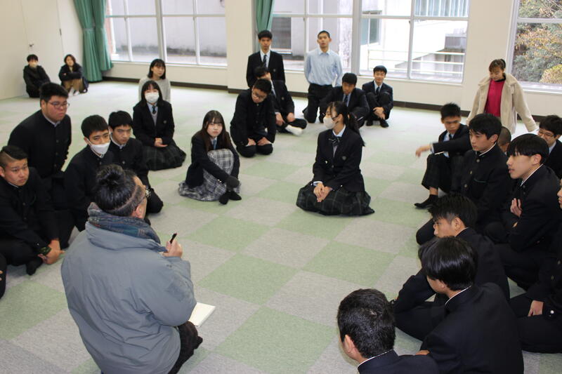 3年生はみんなで円になり、自分自身のことや将来のことなどを