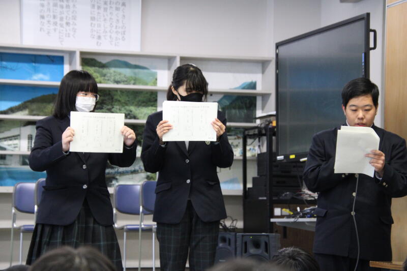 王冠 3学期始業式 農業クラブ・生徒会役員任命式