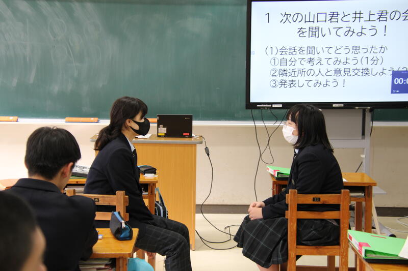 1年生総合的な探究の時間(みどりの時間)にて、話の上手な聞き方について実演も交えながら理解を深めました了解