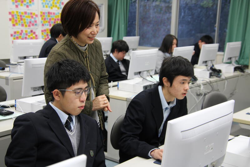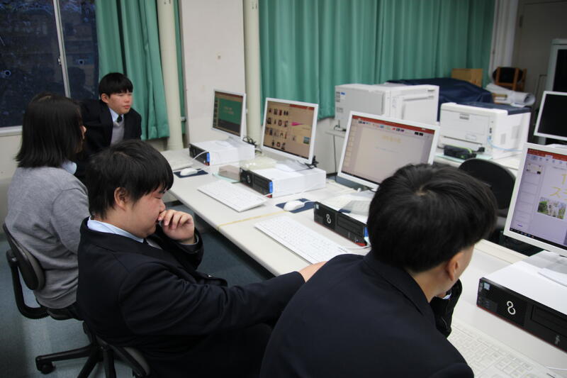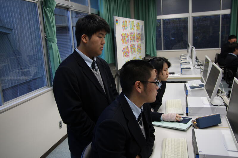 1年生では情報の授業でパワーポイントを活用した自己紹介やPR作成を行い、各々趣味嗜好を凝らして作成し、互いに盛り上がっている様子でした