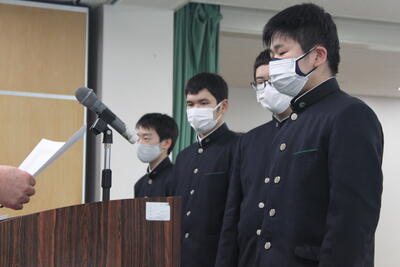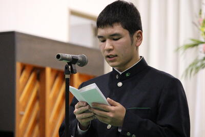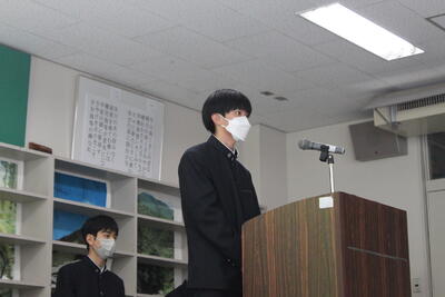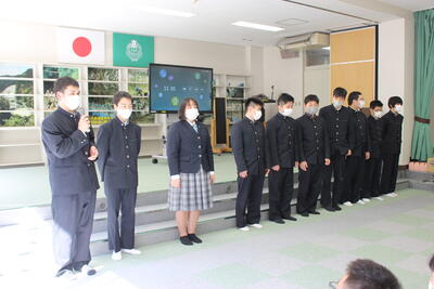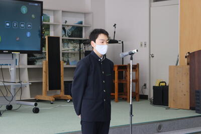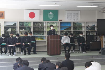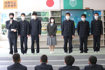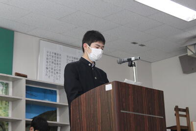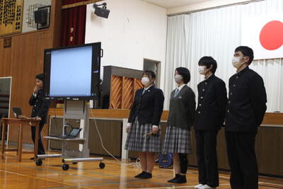 各学年から代表が選ばれ、全校生徒の前で発表をしました