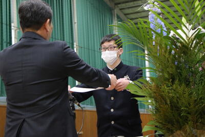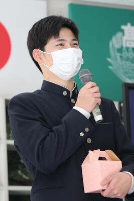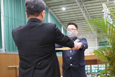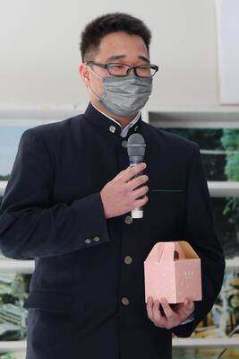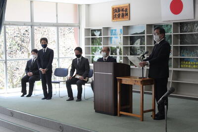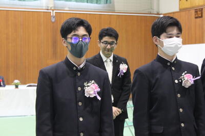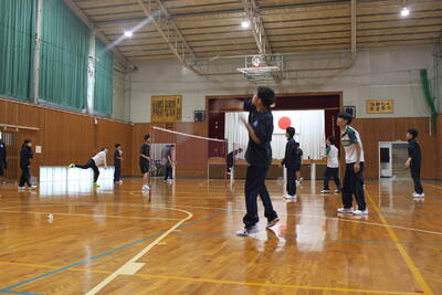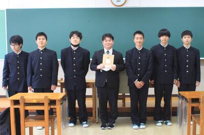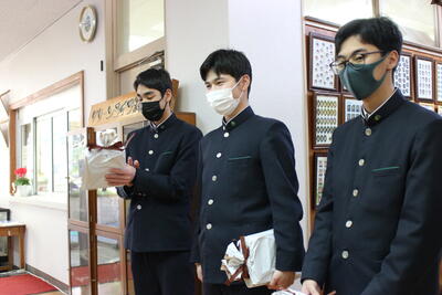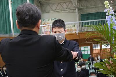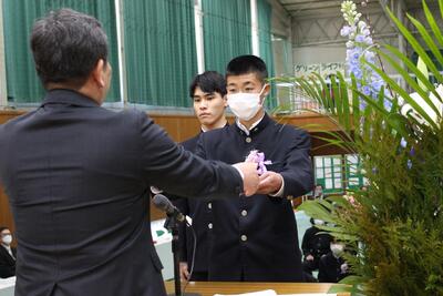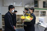 バドミントン部は、後輩から先輩に記念品が渡され、後輩・卒業生、そして顧問が挨拶をしました