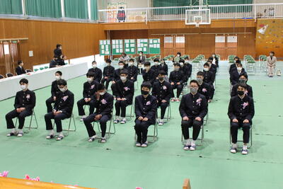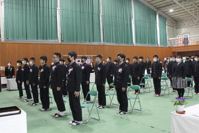 顧問・指導者の挨拶、活動様子DVD上映、卒業生挨拶、在校生の決意、記念品贈呈を行ない別れを告げました。