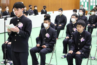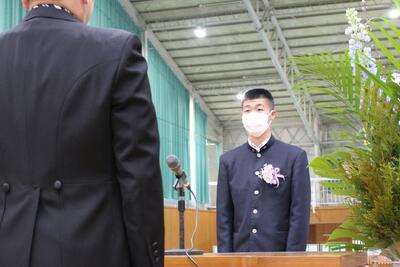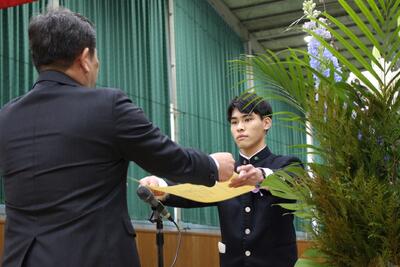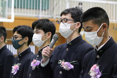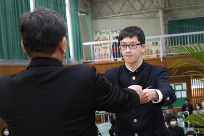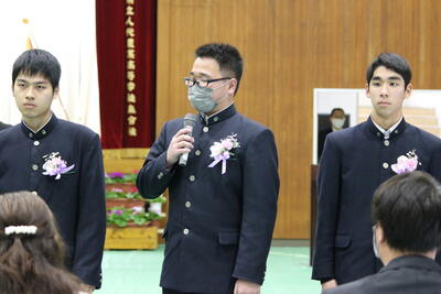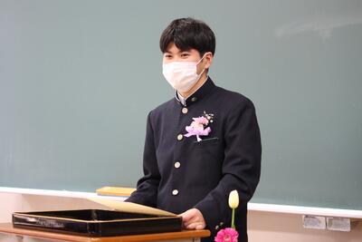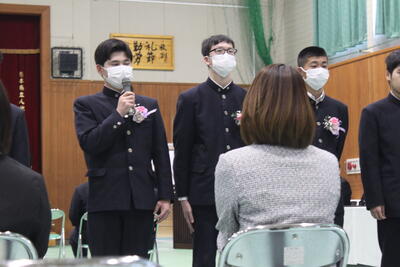 後輩から卒業生へ「寄せ書き」と「名場面を集めた写真立」を贈られ、1人1人が挨拶をしていました
