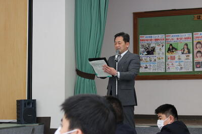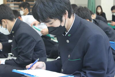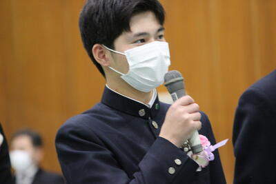 1・2年生の中で、今春の統一地方選挙で投票できる生徒はいませんが、今回思ったことを忘れずに、選挙の際には「社会を支える一人」になってください