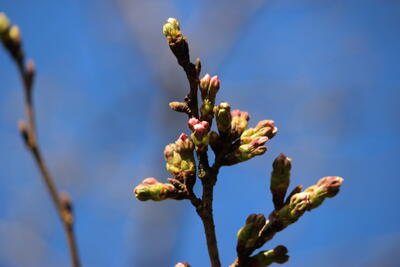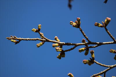 例年だと、あと1週間でぐらいで開花、3月末に満開です。今年はどうでしょうかね