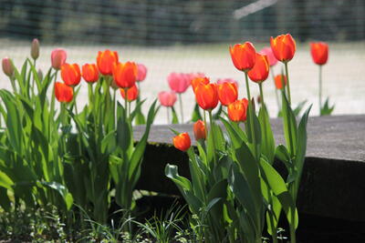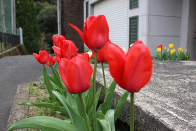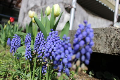 ムスカリも見頃です。チューリップは来週には見頃でしょう