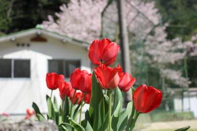 今日、熊本地方のソメイヨシノ開花宣言が出されましたが、泉分校のソメイヨシノはほぼ満開です