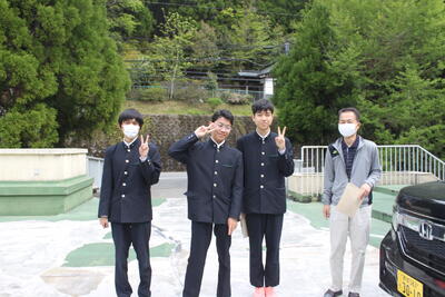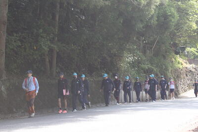 生徒と職員が皆で登って行きました