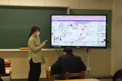 朝、1年生の教室を覗いてみると、歴史の授業があっていました