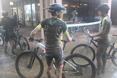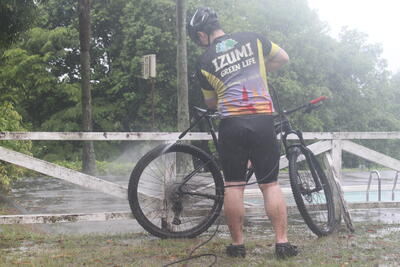 その位、雨がたくさん降る中での大会となりました写真でも分かりますが、地面はぬかるみ、車輪が跳ね上げた泥でユニフォームが汚れていますねそのような状況でも、参加した3年生3名、2年生2名が全員完走