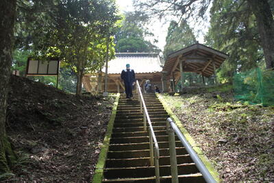 急勾配の路をどんどん登っていくと、目的地の栗木六大神社に到着