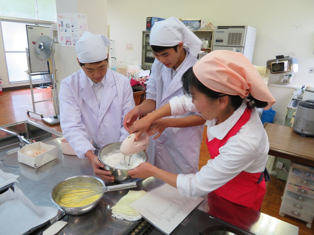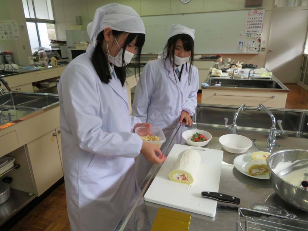 ライフコース2年生4人が米粉を使った料理を学びました。講師として熊本県米粉インストラクターの河野先生来ていただき、ロールケーキ作りに挑戦しました。時間はかかりましたが、なんとか完成することができました。