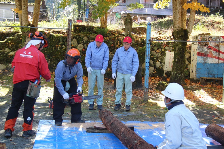 八代地域林業研究・普及連絡協議会主催の平成29年度高校生に対する林業経営・就業体験学習会が、12月9日(土)泉コミュニティセンターで行なわれグリーンコースの2年生と3年生がチェーンソー整備とジビエ料理にそれぞれ分かれて挑戦しました。当日は講師として第一索道商事社長の平野隆三氏と八代林業研究グループの方々が、チェーンソー目立てなどを指導していただきました。また同じ時間帯に、地元のしゃくなげ会の方々のご指導により、シカ肉と猪肉を使ったジビエ料理に挑戦し、皆で会食しました。