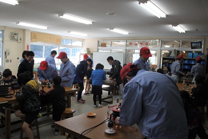 泉分校で行っている、松ぼっくりを使ったクリスマスツリー作りを体験教室の形で行いました。お年寄りから子供まで沢山の方々に体験してもらうことができました。生徒達も学校での交流とは違い、少し緊張していたようでしたが、上手にサポートすることができていたようでした。