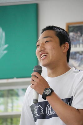 まず村上校長先生や渡部生徒会長の挨拶があり、その後は恒例の自己紹介です。
