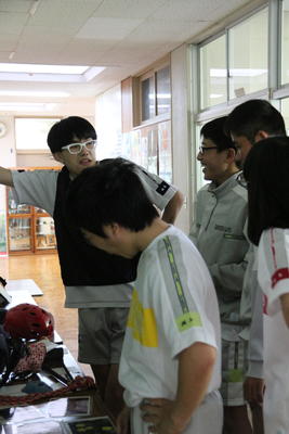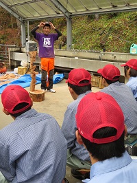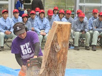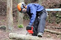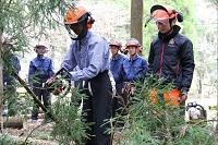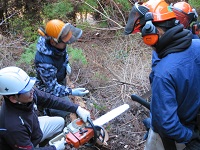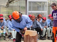 熊本県林業研究指導所から3名来ていただき、2年生対象にチェーンソー講習をおこないました。基本的なチェーンソーの操作方法の説明を受けた後、伐採を見学し、今回は玉切りに挑戦しました。お忙しい中、3名の講師の先生方ありがとうございました。