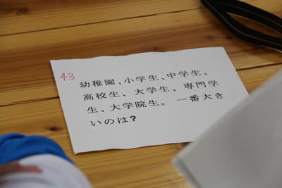 グループでの親睦が深まったところで、学校全体を使った「宝探し&クイズ」を行いました。