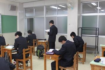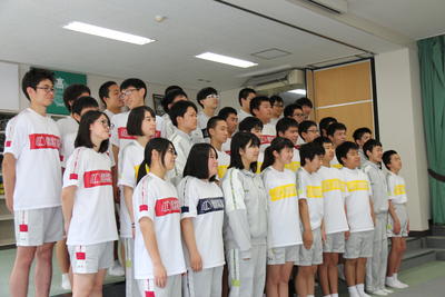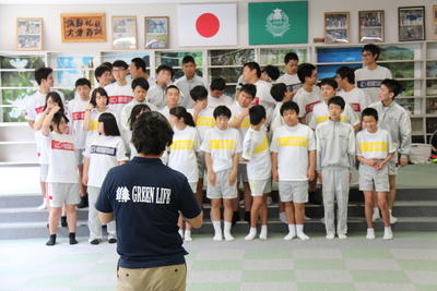 泉分校の校歌を覚えよう!!ということで、本校から音楽の岩田先生を招き、全学年で歌唱指導を行いました。聞き慣れない校歌を22期生は一生懸命歌っていました。これから、校歌を歌う時は自信を持って大きな声で歌っていきましょう。