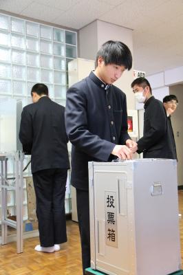 今後、選挙権を得る1・2年生に対し、八代市選挙管理委員会の方々をお招きして講演と模擬投票を行っていただきました。
