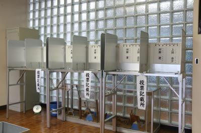 選挙の概要や制度について、按分票なども含めて詳しく教えていただいた後は、両クラスの担任による「架空の選挙演説」が行われ、本物の道具を使って模擬投票が行われ、本番同様の方法で開票作業を行いました。