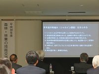 10月30日(火)パレアホール・会議室1にて、九州森林管理局主催の森林・林業の技術交流発表大会が開催され、高校生の部でスギ品種シャカインに関する研究について、分校3年生4人が発表しました。緊張しながらも、これまで調べたことを分かりやすく伝えることができました。