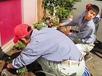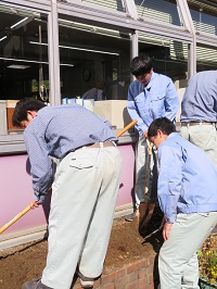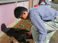 グリーンライフ科3年生が晴れの中、花壇の整備とパンジー・ビオラの花植えを行ないました。
