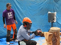 12月11日(火)雨天の中、チェーンソーアートを3年生が学びました。3時間目は、鹿本森林組合職員の田中 章 氏を模範演技を見て、4時間目は生徒たちが実際に体験しました。スギの間伐材を使い、先の細いチェーンソーを使って絵や文字を書きました。