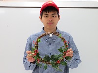 つる植物、樹木の葉や実を使い、クリスマスリースを作りました。また各自が考えた装飾品を付けました。
