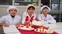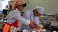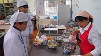 ライフコース2年生が米粉講習会でシフォンロールケーキなどを作りました。講師に熊本県米粉インストラクター(河野京子)氏をお招きし、作り方を学び、なんとか上手にできました。
