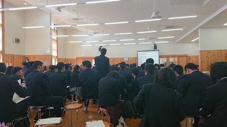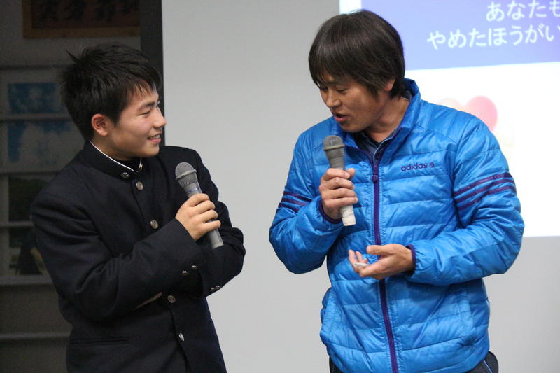 1月10日(木)6限目に薬物活用防止教育講演会が行われました。講師として一般社団法人くまもと禁煙推進フォーラムから山口医院の髙橋徳子様に来ていただき、タバコの健康被害について講演をしてもらいました。タバコを勧められたときの断り方をロールプレイで実際に体験するなど、実践的内容が多く、生徒達も身近なものとして学習していました。