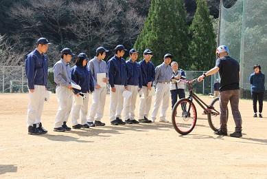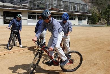 3月14日(木)にマウンテンバイクトライアル教室を行いました。講師にバイクトライアルパフォーマーのNao氏を招き、トライアル技術の実演してもらいました。初めて見るトライアルパフォーマンスは衝撃的なもので、全員釘付けでした。
