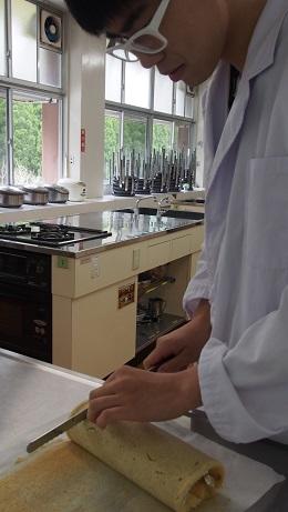 フードデザインの授業でソバ&ユズロールケーキを作りました。泉分校では地域との交流活動でソバ栽培を行っています。ソバの利用促進として商品開発に取り組んでいます!!ソバの食感とユズの風味を活かしたとてもおいしいロールケーキができました!!