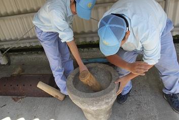 ユズヤマメの飼料を作りました。3月の下旬からユズを混ぜた飼料を給餌しています。時間短縮で今回は石臼と木槌で砕くことで、より速く砕くことができました。また、ユズ入り飼料を食べやすいように小さく丸めました。根気のいる内容で、何かの伝説に向かって頑張っているように見えました。