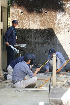 テントの骨組みの調整を行いました。長年使用していると曲ってたり、ゴムが伸びたりしているので、その調整をしました。日々の管理が大切ですね!!